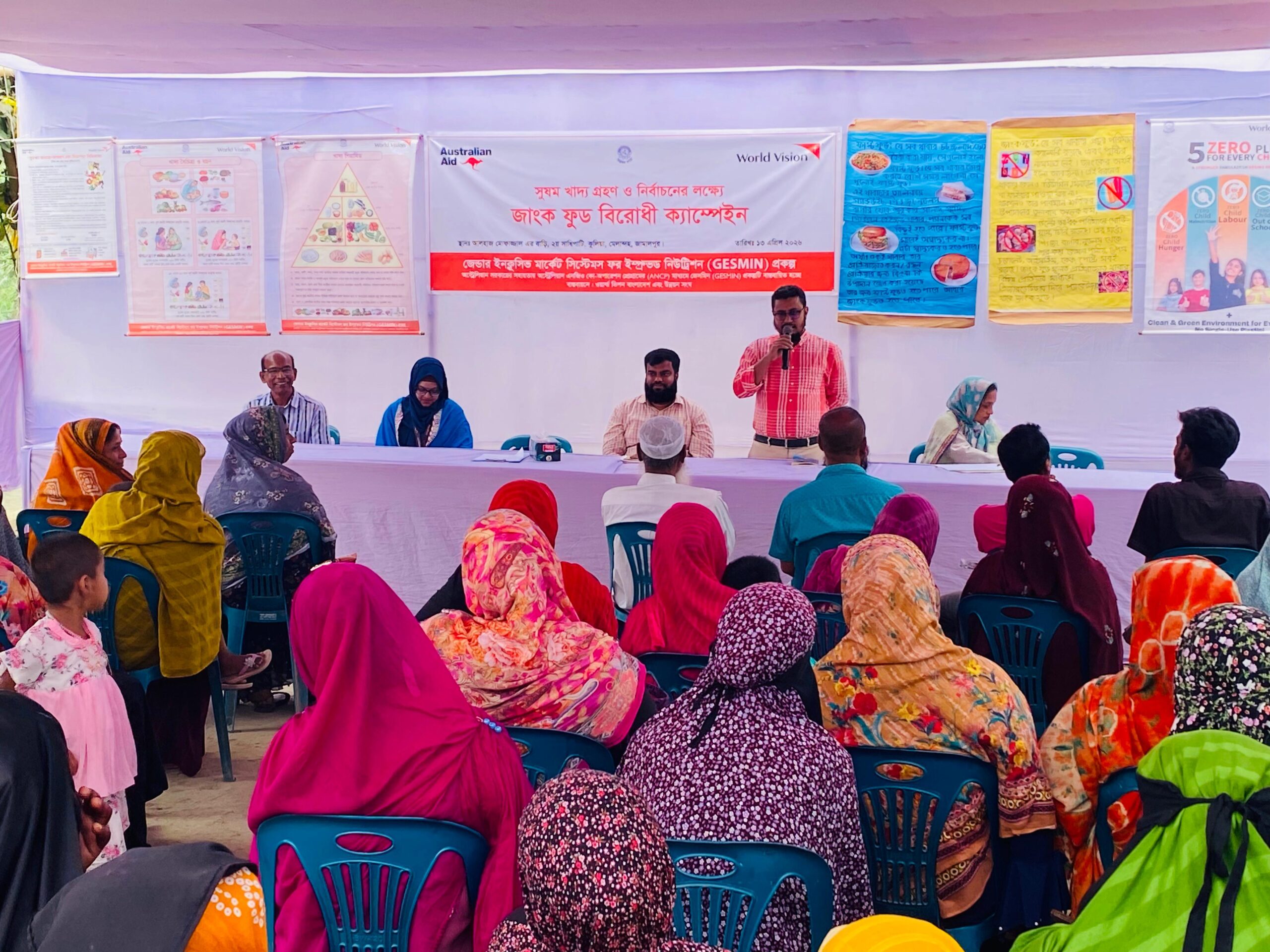 সুষম খাদ্য গ্রহণ ও সঠিক খাদ্য নির্বাচন সম্পর্কে জনসচেতনতা বৃদ্ধি করতে জামালপুরের মেলান্দহ উপজেলায় জাংক ফুড বিরোধী একদিনব্যাপী ক্যাম্পেইন অনুষ্ঠিত হয়েছে।মঙ্গলবার (১৩ এপ্রিল) উপজেলার কুলিয়া ইউনিয়নের ২য় সাধিপাটি গ্রামে মোফাজ্জাল হোসেনের বাড়িতে এ ক্যাম্পেইনের আয়োজন করা হয়। জেন্ডার ইনক্লুসিভ মার্কেট সিস্টেমস ফর ইম্প্রুভড নিউট্রিশন (GESMIN) প্রকল্পের উদ্যোগে ও অস্ট্রেলিয়ান সরকারের সহায়তায় অস্ট্রেলিয়ান এনজিও কো-অপারেশন প্রোগ্রাম-এর আওতায় উন্নয়ন সংঘ এবং ওয়ার্ল্ড ভিশন বাংলাদেশ যৌথভাবে প্রকল্পটি পরিচালনা করছে।
