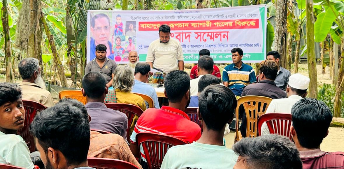 জামালপুরের ইসলামপুর উপজেলায় রাজনৈতিক দলের নাম ভাঙিয়ে চাঁদাবাজি, জমি দখল, দোকান ভাঙচুর ও সন্ত্রাসী হামলার অভিযোগ তুলে সংবাদ সম্মেলন করেছেন এক ভুক্তভোগী পরিবার।